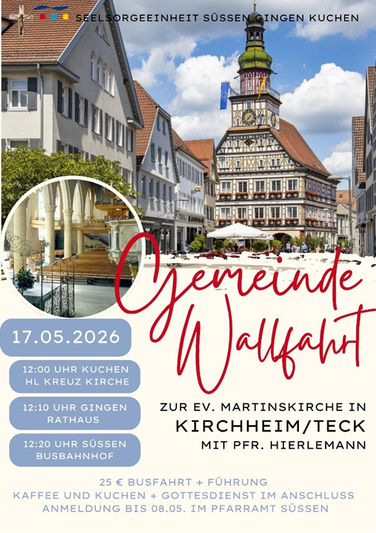 Es grüßen Sie die Kirchengemeinden Mariä Himmelfahrt Süßen und Heilig Kreuz Kuchen mit St. Barbara Gingen/Fils.